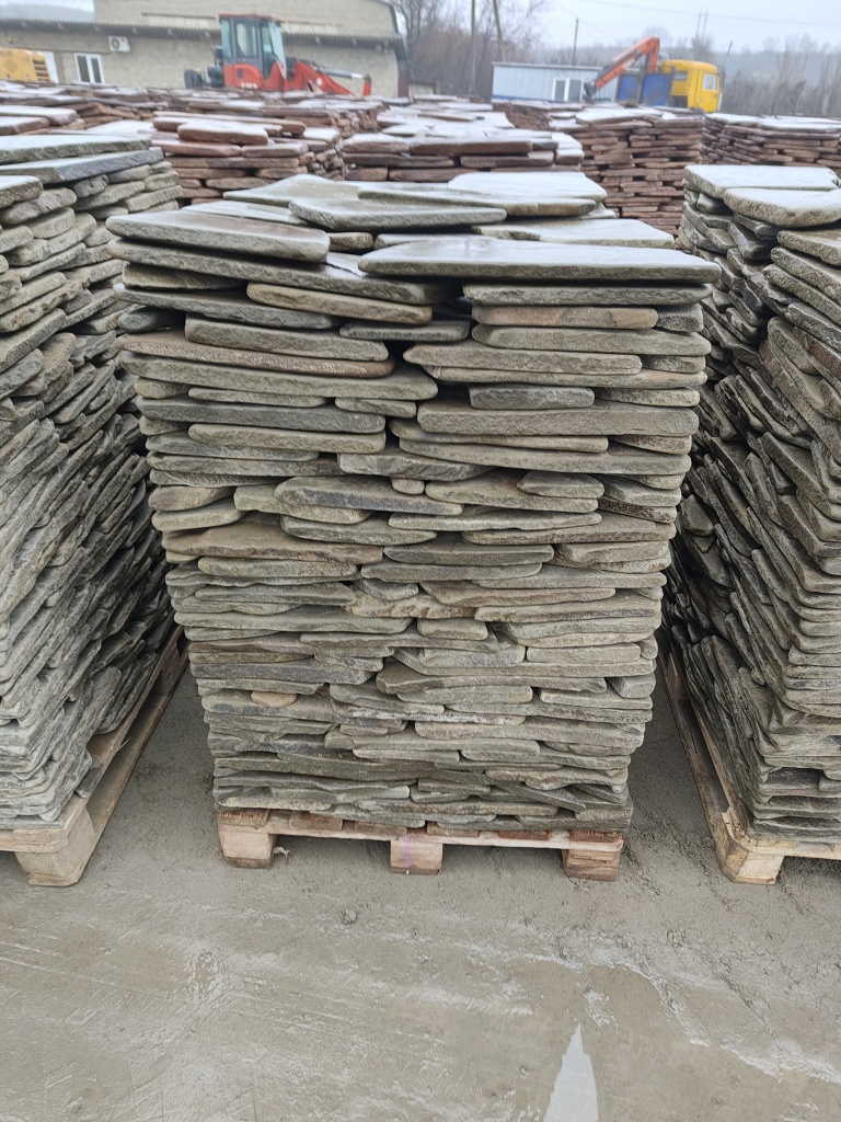 Галтованный серо-зелёный песчаник для мощения дорожек, пешеходных зон, тротуаров на бетонное основание.